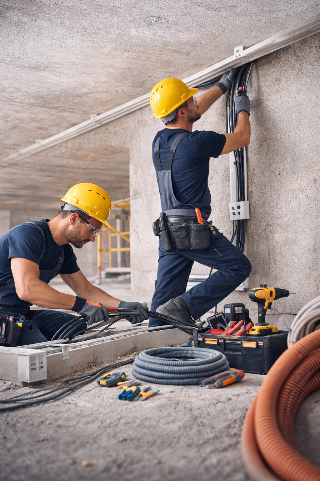 Wir unterstützen Elektrofachbetriebe und Bauprojekte mit vorbereitenden Tätigkeiten in der Elektroinstallation. Dazu gehören die Leitungs- und Kabelverlegung nach Plan, das Einziehen von Leitungen in Leerrohre und Kabelkanäle sowie die Montage von Installationswegen.